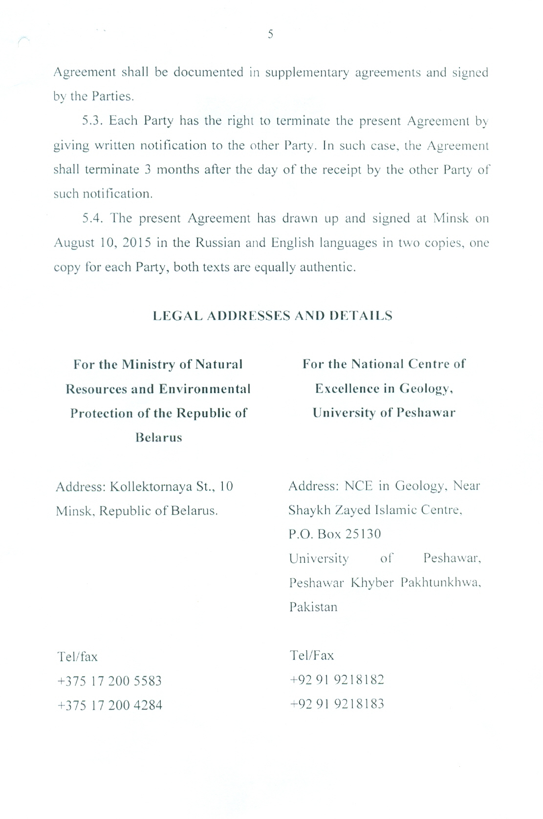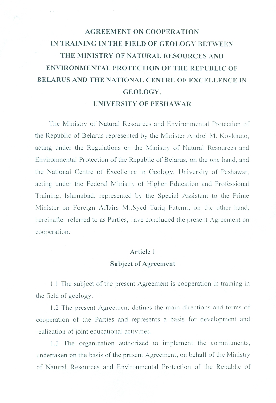 MOU Signed between NCE in Geology and The Minsitry of Natural Resources and Environmental Protection of the Republic of Belarus