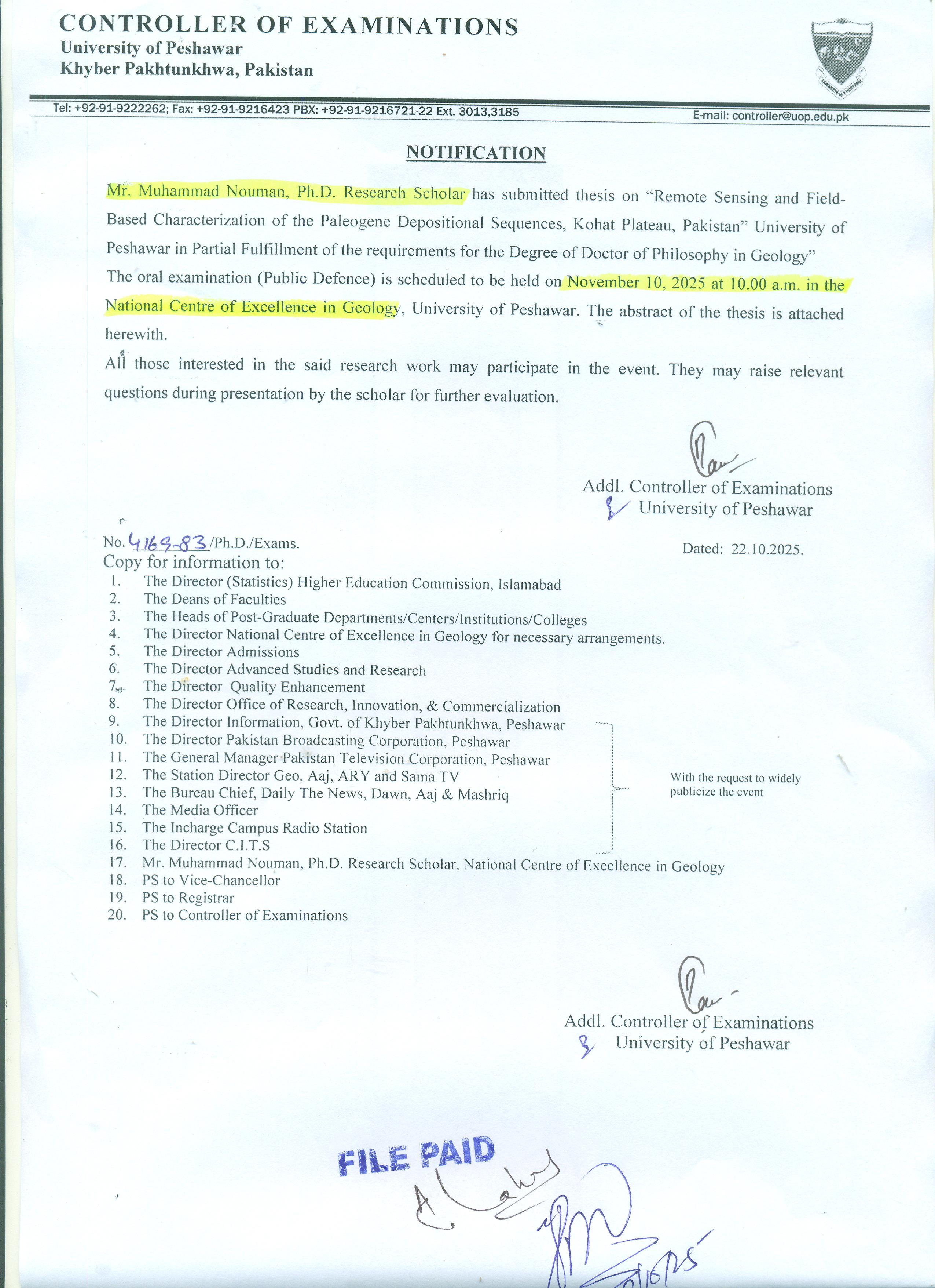 "REMOTE SENSING AND FIELD-BASED CHARACTERIZATION OF THE PALEOGENE DEPOSITIONAL SEQUENCES, KOHAT PLATEAU, PAKISTAN"